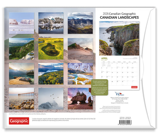 Canadian Geographic Landscapes OFFICIAL | 2026 14 x 24 Inch (Hanging) Monthly Deluxe Wall Calendar | Envelope