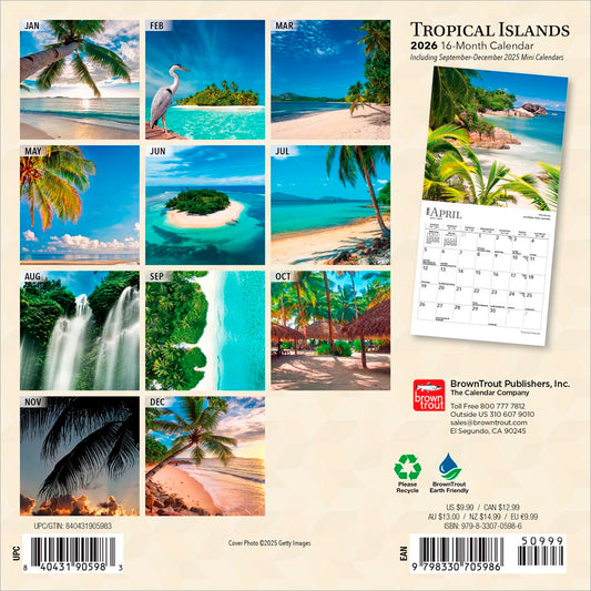 Tropical Islands | 2026 12 x 24 Inch (Hanging) Monthly Square Wall Calendar | Foil Stamped Cover
