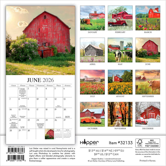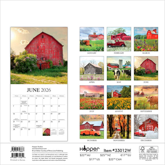 Beckoning Barns | 2026 12 x 24 Inch (Hanging) Monthly Square Wall Calendar | Featuring the Artwork of Lori Deiter