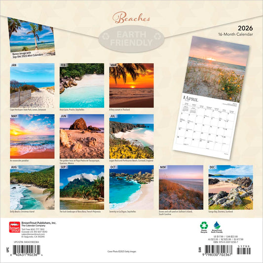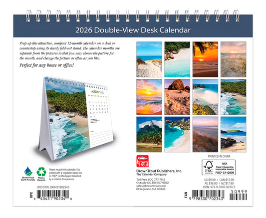 Beaches | 2026 7.5 x 6 Inch Monthly Double-View Easel Desk Calendar