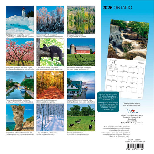 Ontario | 2026 12 x 24 Inch (Hanging) Monthly Square Wall Calendar | English/French Bilingual