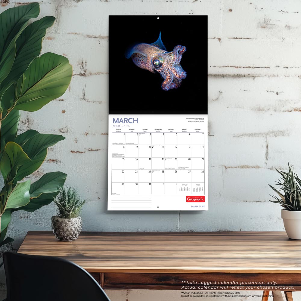Canadian Geographic Marine Life OFFICIAL | 2026 12 x 24 Inch (Hanging) Monthly Square Wall Calendar